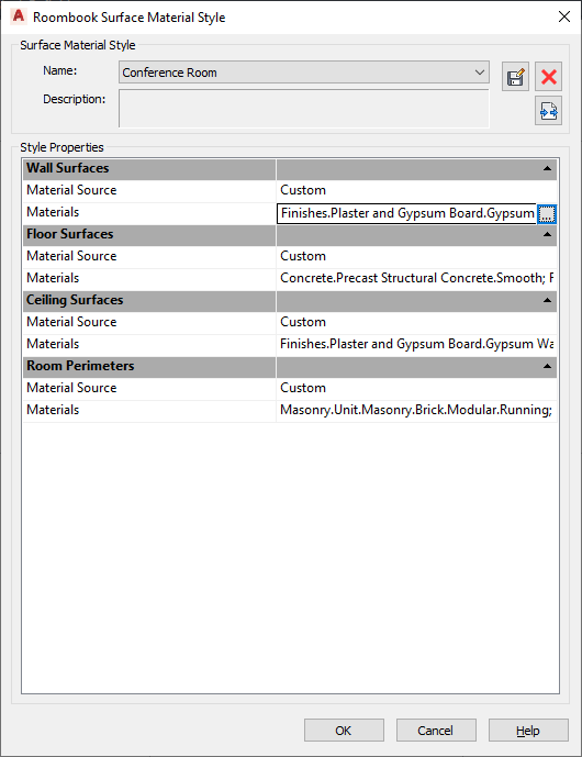 - In the Roombook Surface Material Style dialog box, click the browse button.