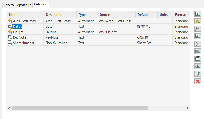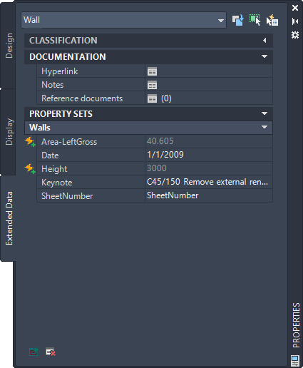 Wall properties with keynote, date, and sheet number fields