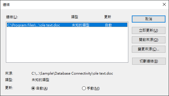 來源發生變更時,將自動更新連結。