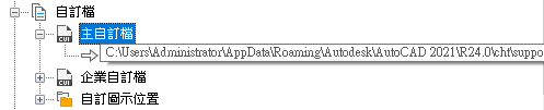 - 在「Windows 檔案總管」或「檔案總管」中,導覽至<磁碟機>:\Users\<使用者設定檔名稱>\AppData\Roaming\Autodesk\<產品名稱>\<版本號碼>\<語言>\support\<自訂檔名稱>.cuix。