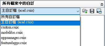 - 選取「主自訂檔 <檔名>」或其中一個載入的 CUIx 檔,以將其設定為工作 CUIx 檔。