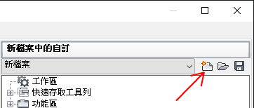 必須先將 CUIx 檔設定為工作檔案,才能將自訂指令加入 CUIx 檔。