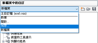 註: 如果您不需要所複製 CUIx 檔中的所有指令和使用者介面元素,則這種建立新 CUIx 檔的方式會導致額外的工作。