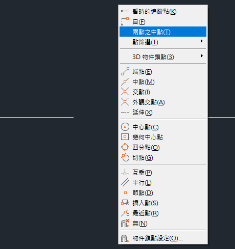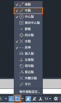 在本練習中,我們將使用「中點」物件鎖點選項。因此,我們先確保「中點」物件鎖點已開啟。