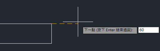 有時,您需要使用既有的點或物件做為參考來定義位置。例如,您可能需要繪製一條從既有的點向右 60 個單位再向上 60 個單位開始的線條,但圖面中沒有任何物件可以鎖點。或者,您可能有一條水平線和一條不相交的垂直線,您需要找到它們的交點。這就是使用物件鎖點追蹤的時機。您可以使用物件鎖點追蹤,搭配物件鎖點,沿著對齊路徑追蹤以找出精確的點。