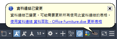 提示: 如果圖面中至少有一個表格包含萃取的資料,AutoCAD 應用程式視窗的系統匣就會顯示「資料連結」圖示。圖示出現時,您可以對圖示按一下右鍵,以管理和更新圖面中的資料連結。DATALINKNOTIFY 系統變數控制「資料連結」圖示的外觀和功能。