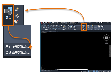 您通常會從以下其中一個來源將圖塊插入到目前圖面中: