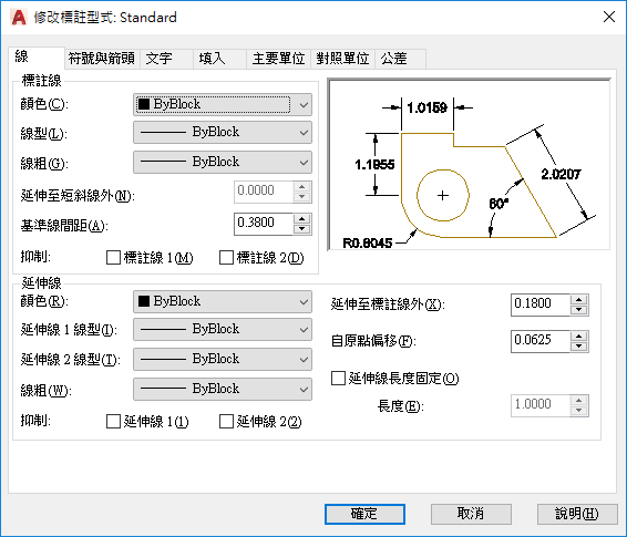 標註型式可協助您建立及執行製圖標準。您可以使用 DIMSTYLE 指令來設定許多標註變數,以控制標註外觀和模式的細微差別。所有這些設定都儲存在每個標註型式中。