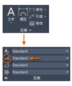 預設標註型式命名為「標準」(英制) 或 ISO-25 (公制)。它會指定給所有標註,除非您將另一種型式設為目前的標註型式。