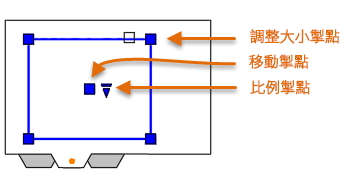 配置視埠是在配置頁籤中建立以顯示模型空間比例視圖的物件。您可以將其想成是可顯示部份模型空間的封閉迴路電視螢幕。您可以選取配置視埠,如同選取其他任何物件一樣。當您選取它時,會顯示數個掣點,讓您調整視埠大小、移動視埠,以及指定其中所含視圖的比例。