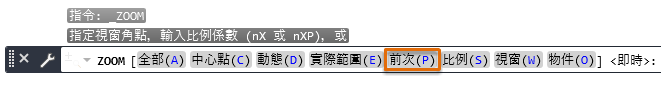 您可以在「指令」視窗中輸入 ZOOM,然後指定「前一個」選項,來逐步返回先前的多個視圖。