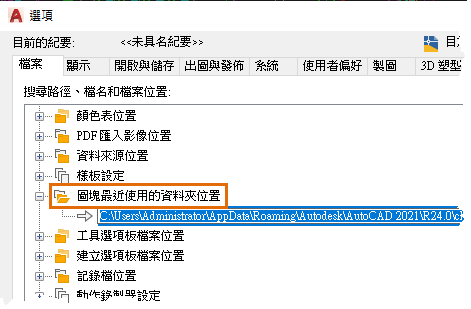 BLOCKSRECENTFOLDER - 設定儲存最近插入或建立的圖塊的路徑。