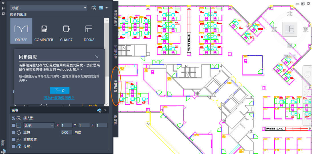 「圖塊」選項板已增強,可讓您隨時隨地更方便地存取圖塊。