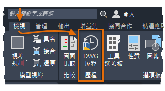 當您登入後,「圖檔歷程」選項板會顯示該圖面的任何舊版清單。