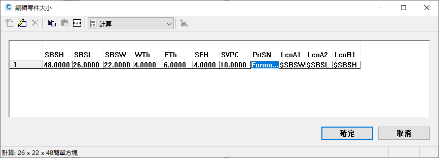註: 在模型中設定的計算值無法在「編輯零件大小」對話方塊中進行編輯。若要變更這些值,您必須編輯此模型。