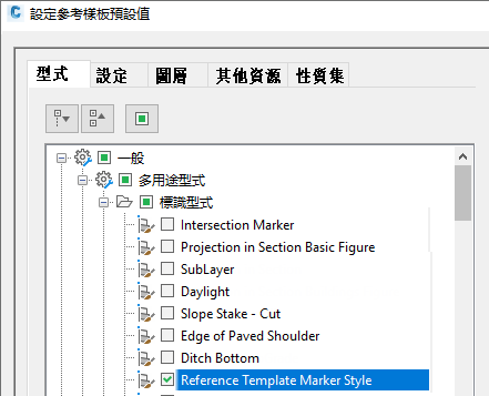 - 選取預設所要參考型式和設定的勾選方塊。在以下範例中,僅會選取「參考樣板標識型式」。