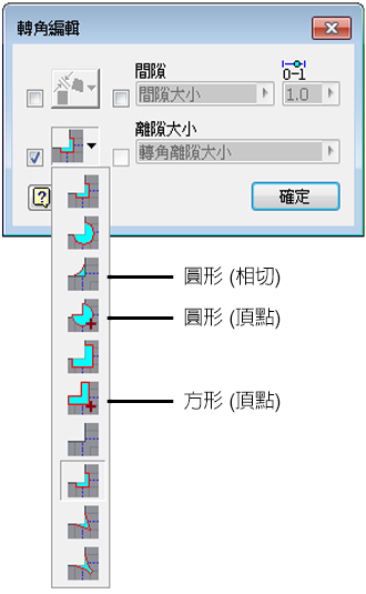 已將「圓形 (相切)」、「圓形 (頂點)」和「方形 (頂點)」選項加入至轉角離隙,以提供更多放置解決方案。