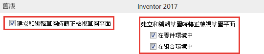 現在,我們為零件草圖和組合草圖提供了單獨的設定,例如,您可以在編輯元件時停用查看草圖平面,在編輯組合草圖時啟用「轉正檢視」。