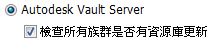 如果 Vault 伺服器上有自訂資源庫,您可以除選新的「應用程式選項」設定「檢查所有族群是否有資源庫更新」,來快速抑制自訂資源庫中的所有族群同步至其在 Vault 伺服器上的父系資源庫。
