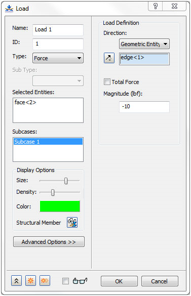 類似於「力」,您可以使用「幾何圖元」,來使用幾何圖形以定義負載方向。