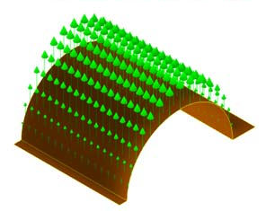 軸承負載僅可套用於圓柱表面上。表面不需要是完整的 360 度圓柱,它可以是圓柱的任何部分。此外,地形可以屬於 CAD 模型或手動建立的結構化網面。