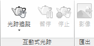 彩現過程可以透過使用功能區上的關聯式「互動式光跡追蹤」面板來控制。
