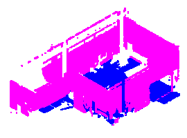| 在此視圖中,「牆」掃描區域是以洋紅色顯示,而「樓板」掃描區域以藍色顯示。 |