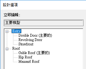依預設,Revit 會將新選項集命名為「選項集 1」,並在此選項集中建立主要選項。