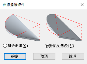 對於扇形表面選取「符合曲線」,或對於平的表面選取「投影到側邊」。