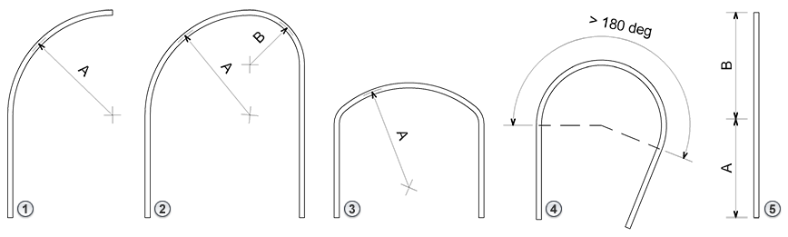 將鋼筋幾何圖形與某個造型比對時,如果此造型包含在「一般鋼筋設定」對話方塊中定義的鋼筋造型定義中,則會使用彎鉤和端點處理。