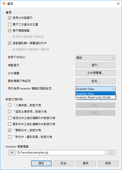- 用於檢視 Inventor 檔案的預設設定