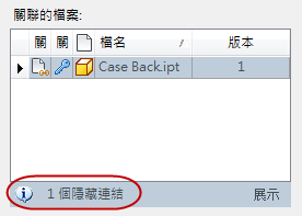 如果有多個料件檔案連結,隱藏連結的數量會列示在視窗左下角。