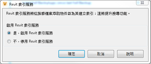 安裝 Revit Interoperability 後,必須先在 Autodesk Data Management Server Console 中啟用 Revit 索引功能,然後才能使用 Revit 族群搜尋。