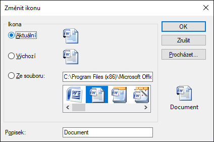 Zobrazí dialog Procházet (standardní dialog pro výběr souboru), ve kterém můžete vybrat ikonu ze souboru.