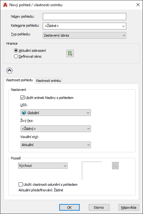 Definuje oblast výkresu, která je přiřazena k pojmenovanému pohledu.