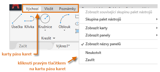 Poznámka: Do předchozího umístění vrátíte pás karet dvojím kliknutím na záhlaví pásu.