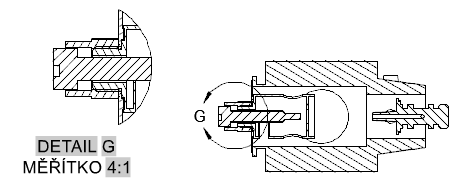 - Zobrazí spojovací čáru mezi rámečkem detailu a hranicí detailu. Kromě toho zobrazí rámeček okolo detailů a u modelů zobrazených v detailech nastaví plynulé čáry řezu.