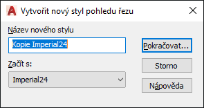 Pojmenuje nový styl řezu. Výchozím názvem nového stylu je název stylu Začít s, před nějž se doplní „Kopie“.