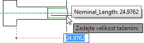 Při vložení obsahu do výkresu budete vyzváni k zadání „velikosti při přetažení“. Rovněž zobrazí název příslušné rozměrové vazby v popisku nástroje. Pokud je povoleno zadávání rozměrů, můžete zadat hodnotu kóty přímo v odpovídajícím popisku nástroje.