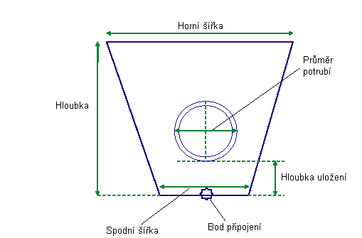 | Hloubka podsypu | Hloubka lože potrubí ke dnu příkopu | Numerický, kladný |