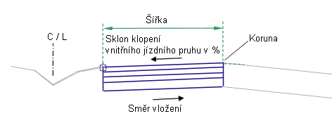 Určuje, že vnitřní hrana vozovky bude mít kód Střechovitý sklon |