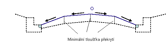 Minimální hloubka překrytí ve čtvrtinových bodech a střechovitém sklonu.