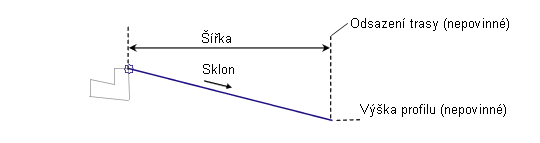 Můžete zadat buď sklon v procentech, nebo poměrnou hodnotu sklonu. Při tvorbě modelu koridoru je možné zadat trasu nebo profil, aby byla umožněna proměnná šířka a sklon.