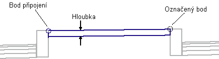Horní část spojnice středního dělicího pásu se vloží mezi bod připojení a označený bod. Jestliže se zadá nenulová hloubka, spodní část spojnice středního dělicího pásu se vloží rovnoběžně s horní částí a vertikální spojnice se přidají pro uzavření tvaru.