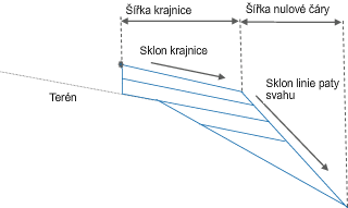Odsazení linie paty svahu Odsazení bodu linie paty ochranné vrstvy Numerický