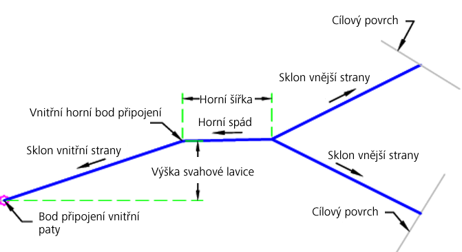 | Bod připojení | Bod připojení, od kterého bude vytvořena svahová lavice. | Vnitřní pata / Vnitřní povrch | Vnitřní pata |