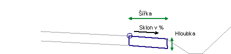 Spojnice krajnice se vkládají směrem od bodu připojení s danou šířkou, sklonem a hloubkou.