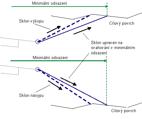 Je-li to nezbytné, sklon se upraví tak, aby se zachoval bod linie paty svahu v rámci minimálního odsazení +/- od základny.