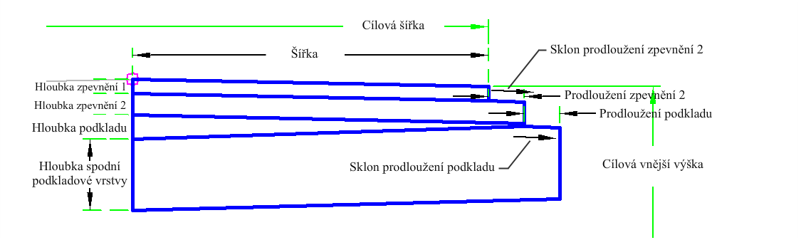 | Prodloužení podkladu | Prodloužení za vrstvu Kryt2 | Numerická, nezáporná |