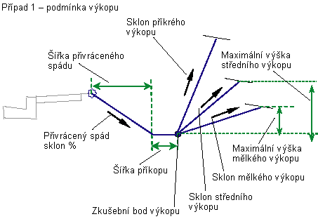 Pokus o sklon výkopu v případě, že spojnice sklonu mělkého výkopu překročí maximální výšku mělkého výkopu |